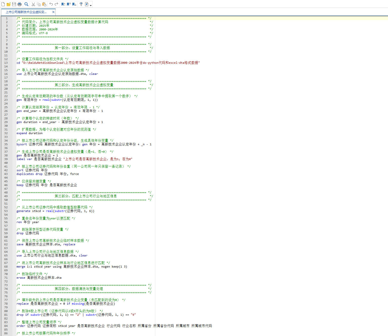 - Stata用户:运行"上市公司高新技术企业虚拟变量数据计算代码.do"