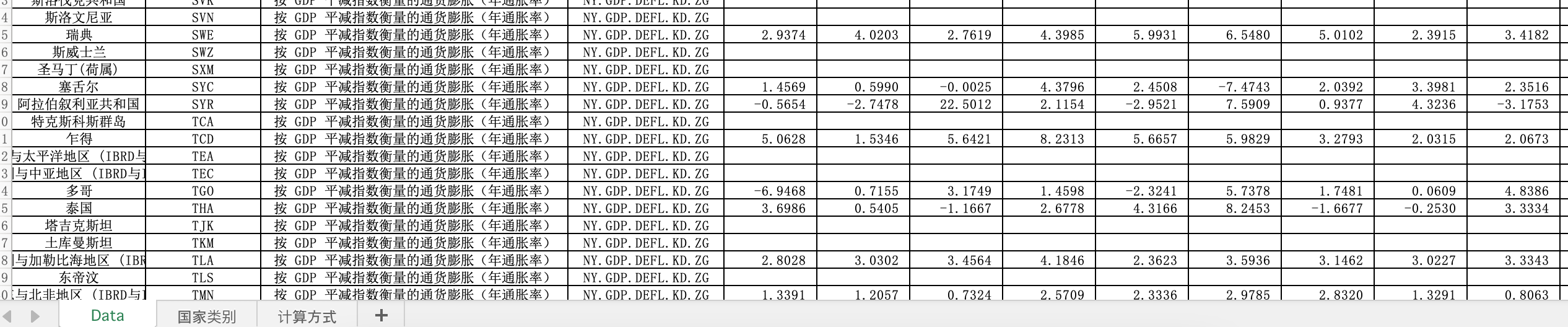 数据名称:全球260多个国家的年通货膨胀率