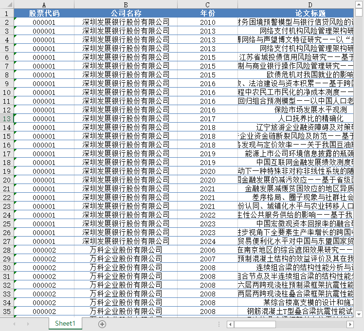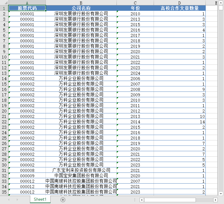 股票代码 公司名称 年份 高校合作文章数量