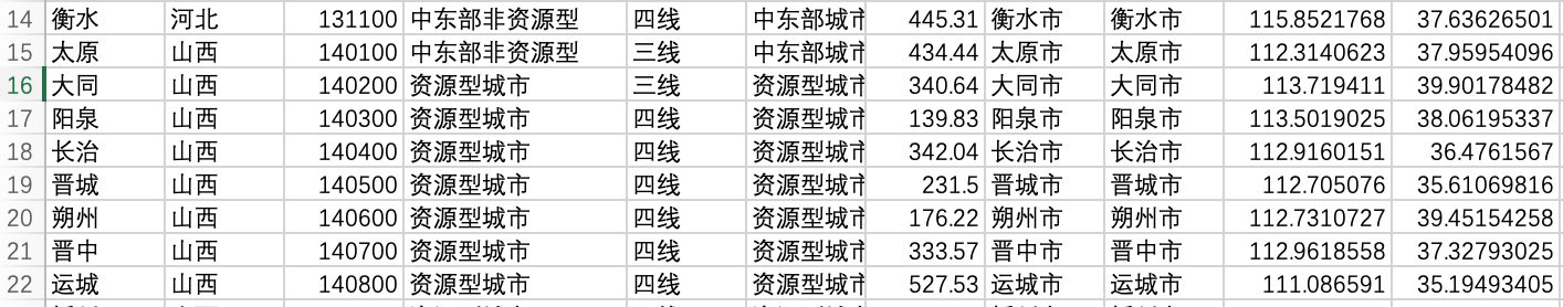 数据名称:地级市-城市等级城市类型划分城市经纬度数据