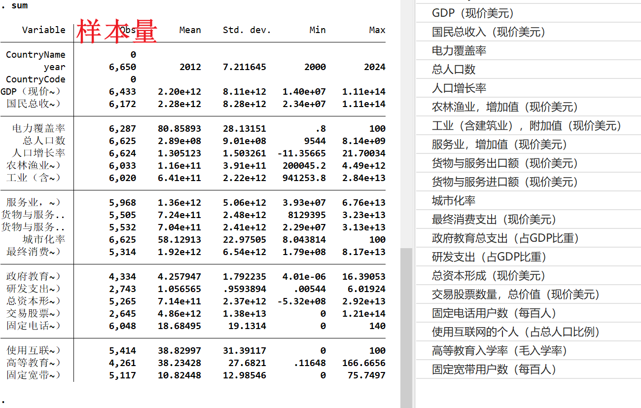 各国控制变量指标2024年!含GDP/GNI/人口增长率/增加值/研发支出以及互联网使用人数、固定宽带用户数等数字经济基础设施相关指标!