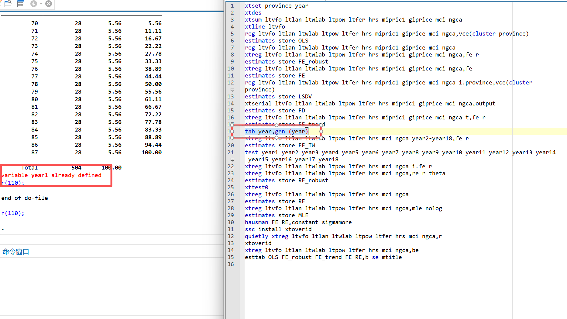 不是year被定义 而是year1被定义 你需要检查一下之前的数据中是不是有这个变量,以及为什么出现这个变量