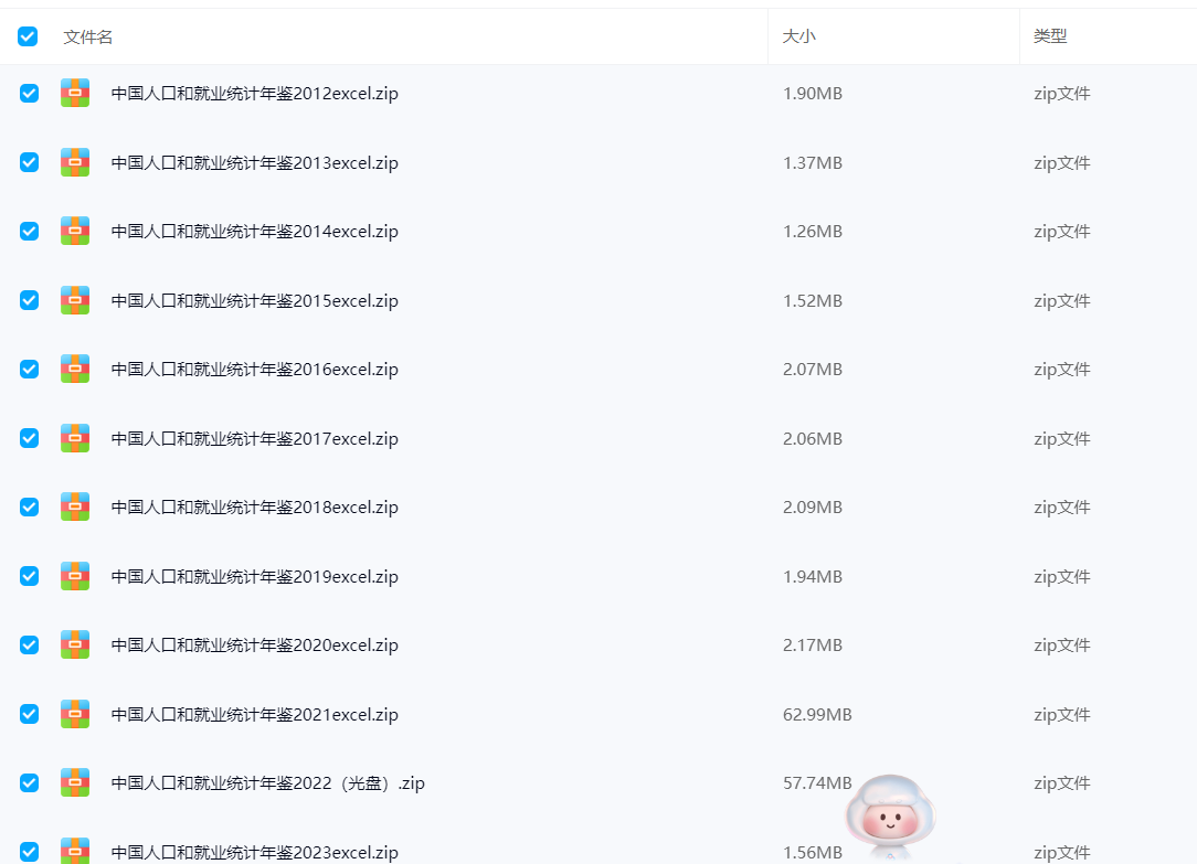 1949—2024年中国人口和就业统计年鉴原始年鉴无任何处理