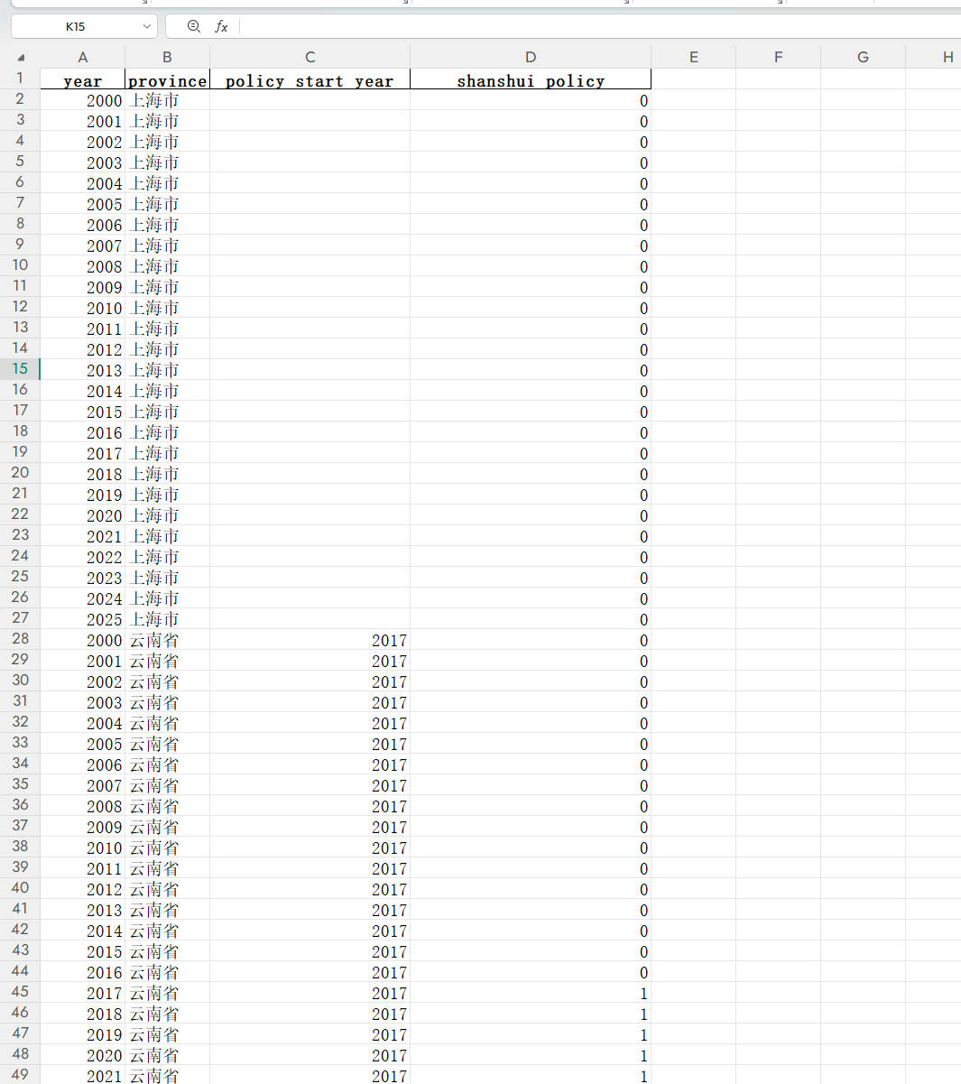 - 政策实施前或未实施省份:shanshui_policy = 0