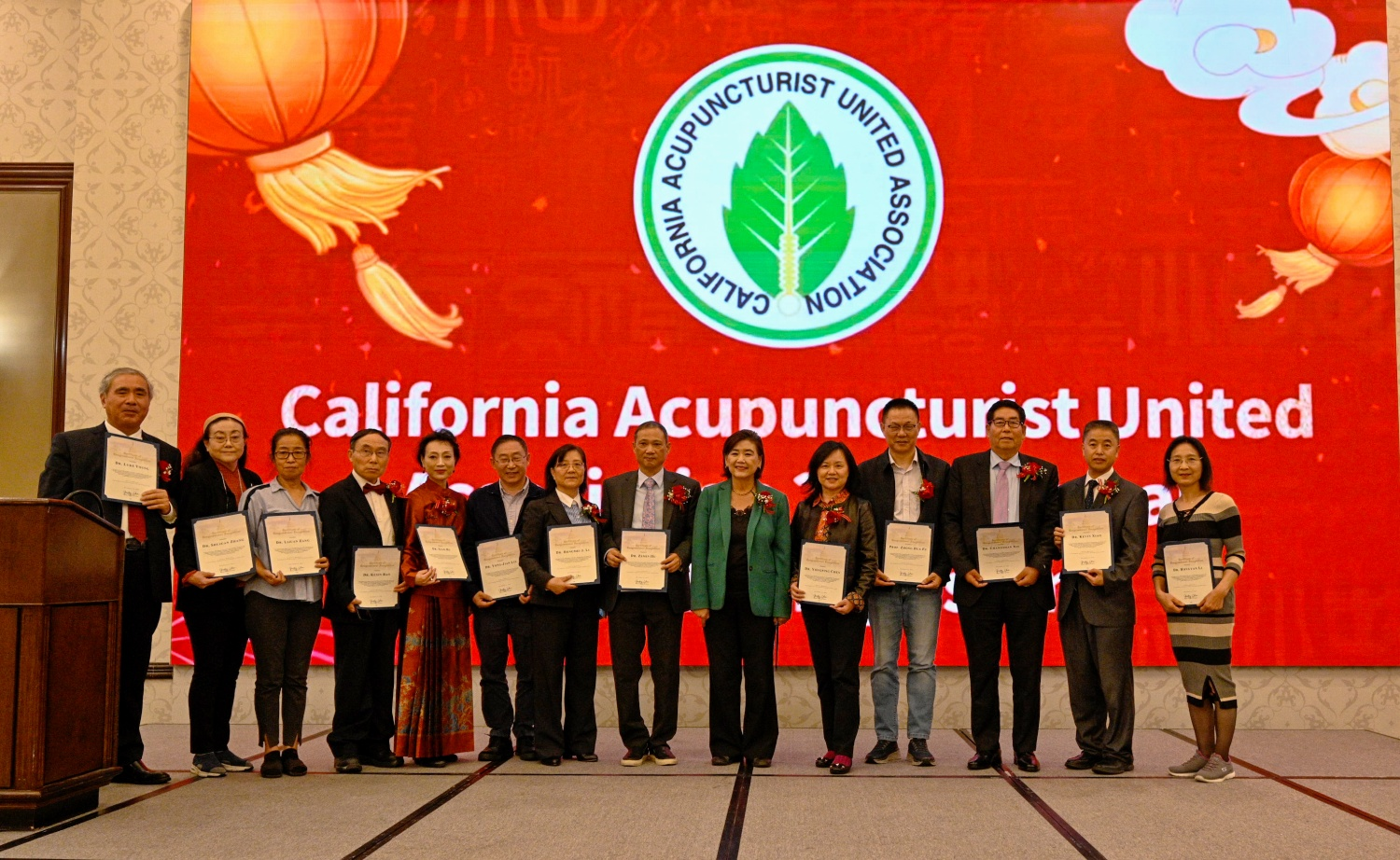 世界中医药总联盟执行主席胡泽民与美国国会议员赵美心、世界中医药总联盟主席辛长山、加州针灸局局长陈永萍、CAUA公会首席顾问Angus、会长李红梅,副会长兼秘书长萧明强等合影
