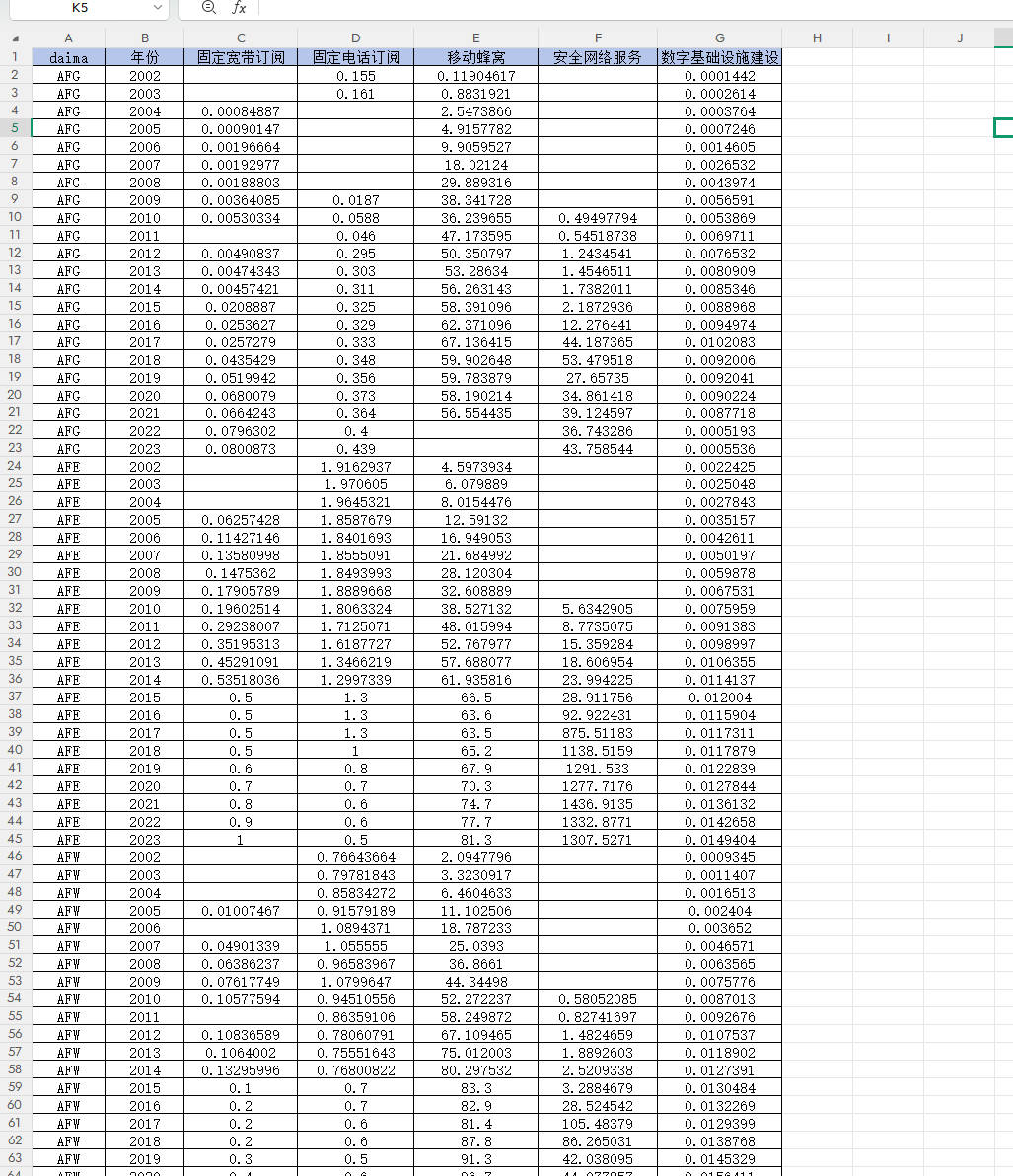 本数据采用王岚等(2025)测度方法,利用熵值法测算得到一国数字基础设施建设指数。