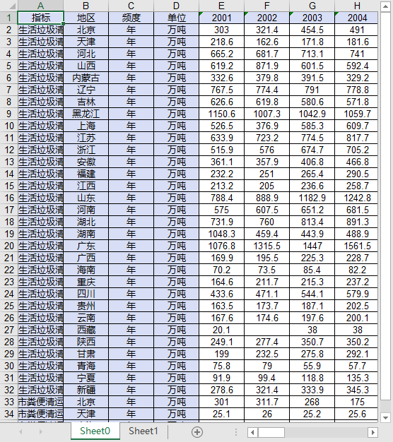全国31个省份2001-2024城市生活垃圾清运量粪便清运量.xls