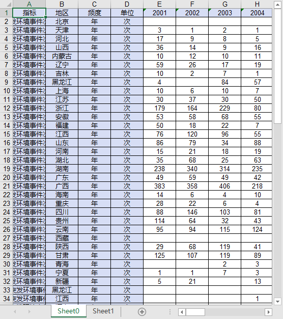 全国31个省份2001-2024较大突发一般突发环境事件次数.xls
