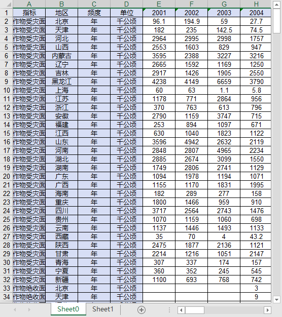 全国31个省份2001-2024自然灾害受灾死亡人数直接经济损失农作物绝收面积旱灾洪涝地质灾害台风风雹低温冷冻雪灾