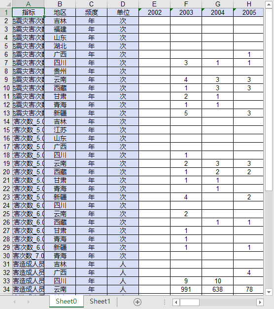 全国31个省份2002-2024地震灾害次数_5.0-5.9级6.0-6.9级7.0级以上人员伤亡数死亡人数