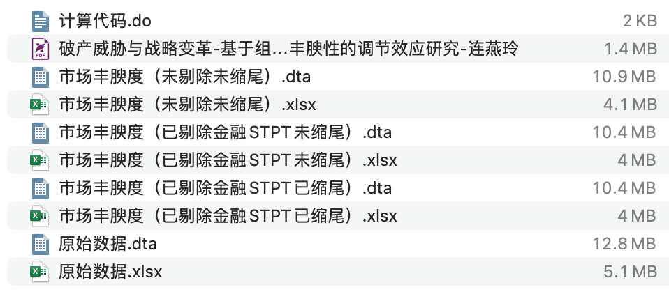 文件格式:Dta格式(使用Stata打开)、Xlsx格式(使用Excel打开)