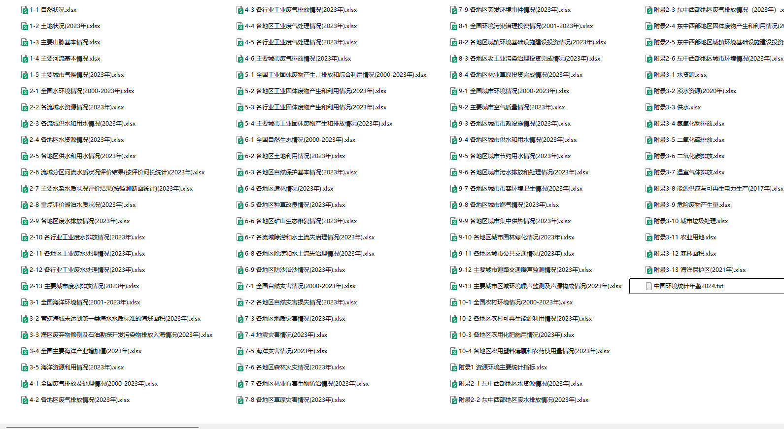 中国环境统计年鉴2024(EXCEL),实际统计数据是2023年的数据,部分国际数据为2023年之前的(存在时间滞后)。