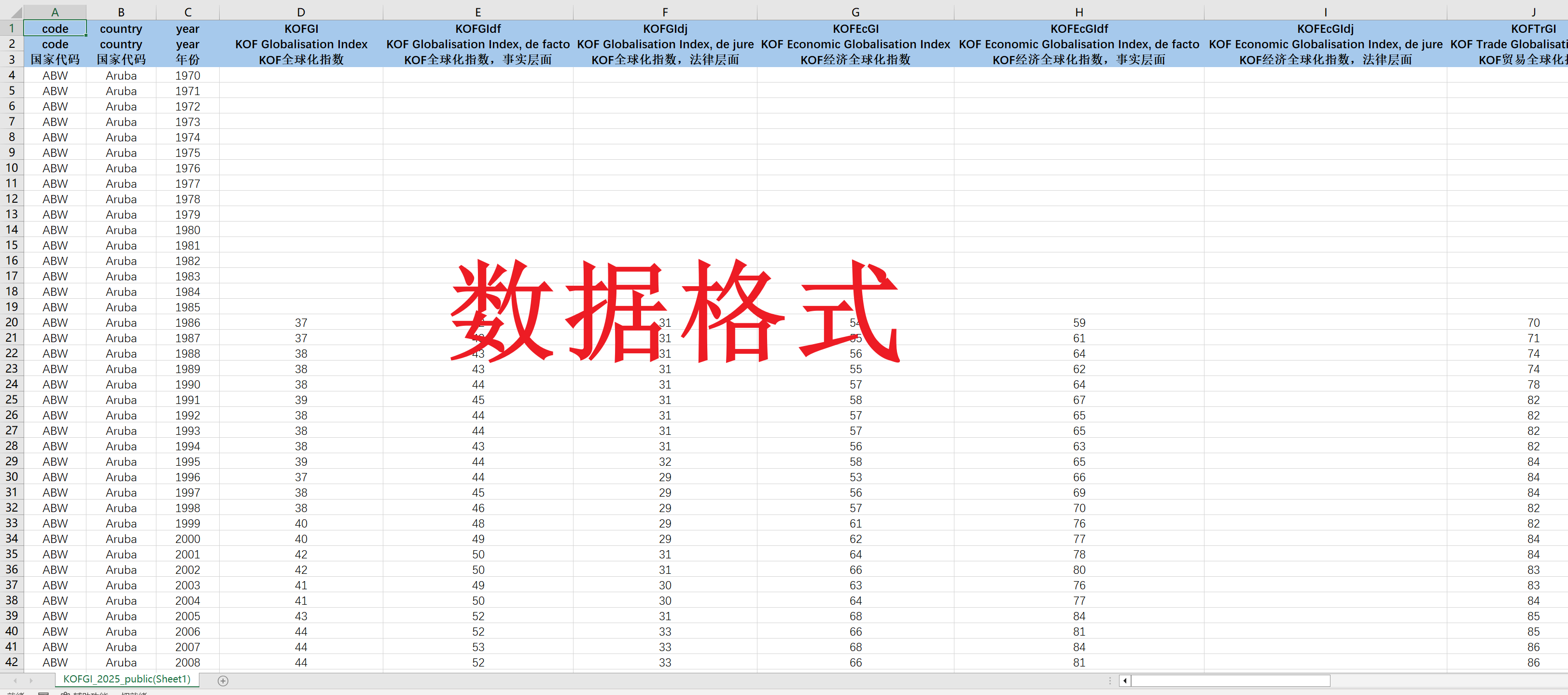 | KOFEcGI | KOF Economic Globalisation Index | KOF经济全球化指数 |