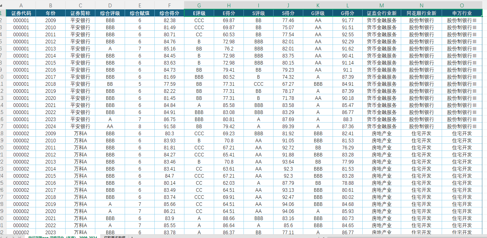 附件2 上市公司华证ESG评级评分数据(2009-2025.01)