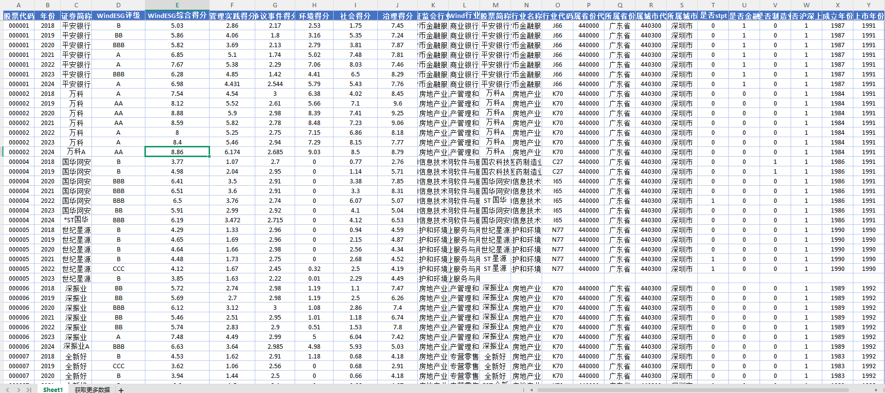 附件1 Wind ESG评级面板数据(2018-2024)