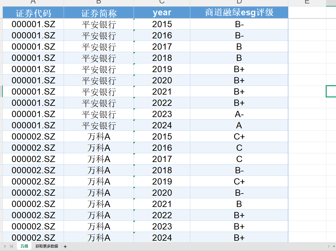 附件5 商道融绿ESG评级数据(2015-2024)