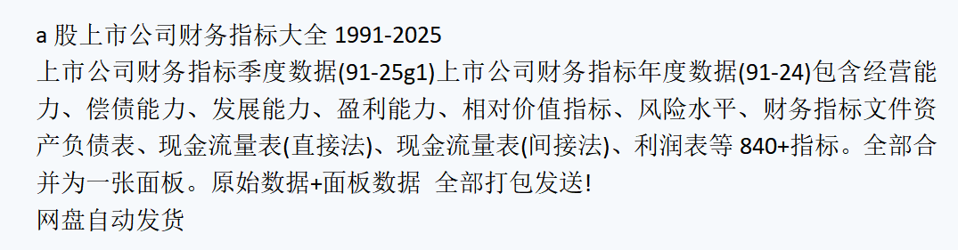 数据介绍: 上市公司财务指标数据2000-2024最新!面板数据,指标丰富,应有尽有!详情见图