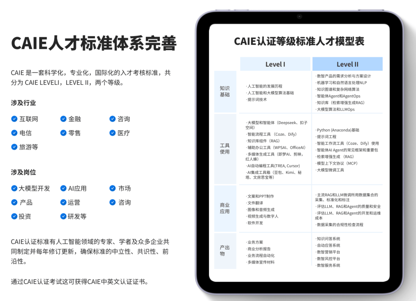 这三类路径面向截然不同的人群。对于绝大多数非技术背景、或期望用AI赋能而非取代现有工作的职场人来说,前两者过高的技术门槛犹如天堑。而CAIE这类通用应用型认证的价值,恰恰在于其专注于构建跨行业的AI认知体系与商业应用能力。其课程设计从通识原理延伸到项目实践,旨在培养连接技术与业务的“桥梁型”人才。