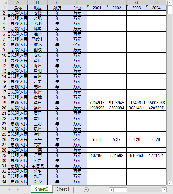 每个指标一个数据文件,每个数据文件包含近300个地级市城市(部分数据指标另外有省级汇总统计):