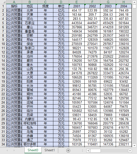 每个指标一个数据文件,每个数据文件包含近300个地级市城市(部分数据指标另外有省级汇总统计):