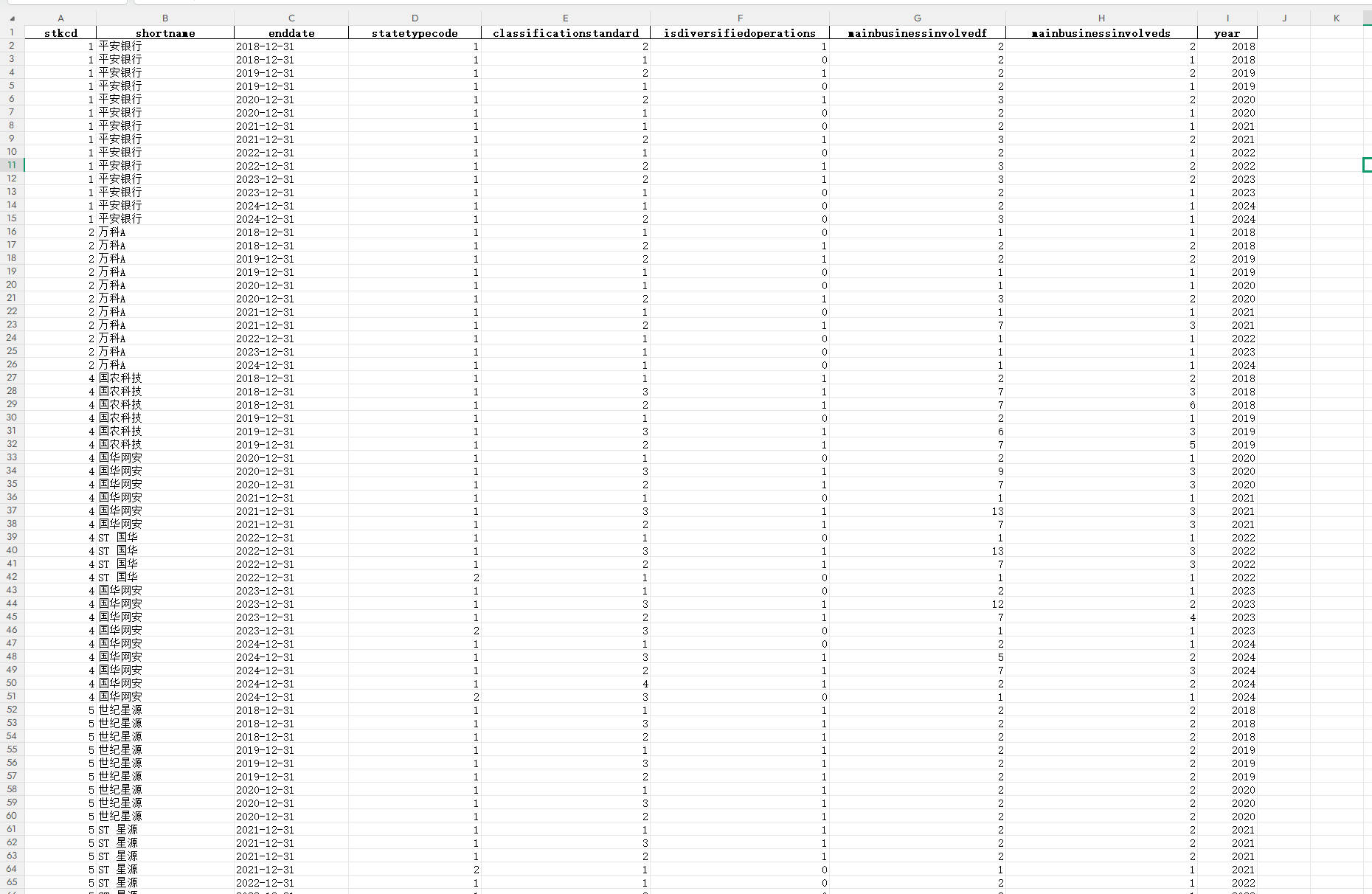- MainBusinessInvolvedF:主营业务涉及业务数量1
