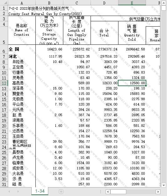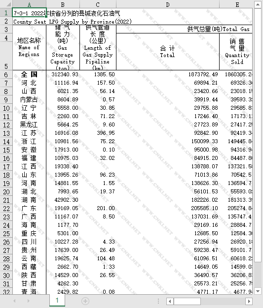 全国分31个省份统计口径的数据