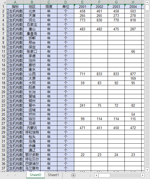 每个指标一个数据文件,每个数据文件包含近300个地级市城市(部分数据指标另外有省级汇总统计):