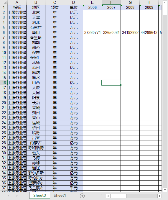 每个指标一个数据文件,每个数据文件包含近300个地级市城市(部分数据指标另外有省级汇总统计):