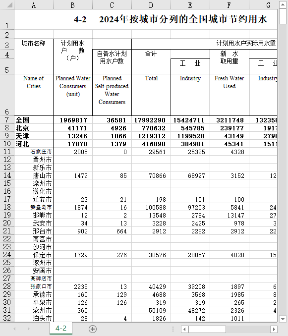 中国城市建设统计年鉴1999-2024全国近700个城市道路燃气给排水等市政设施建设统计数据