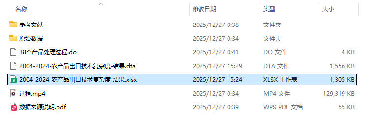 功能:计算38种农产品的出口技术复杂度