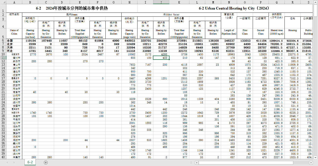 2002-2024地级市县级市集中供热蒸汽热水供热能力管道长度锅炉房热电厂住宅公共建筑面积