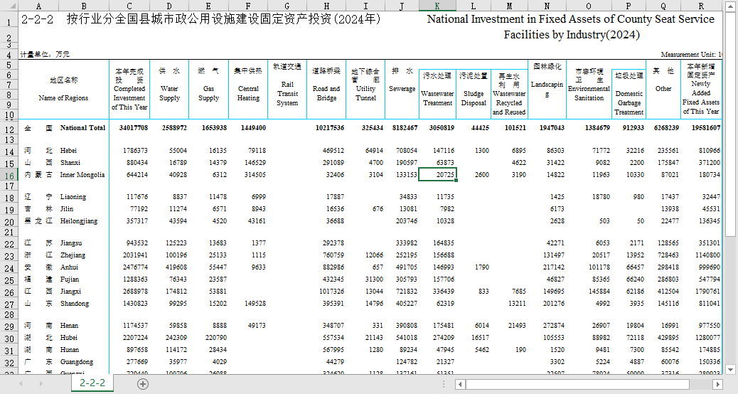 - 2-2-2 按行业分全国分省县城市政公用设施建设固定资产投资(2023).xls