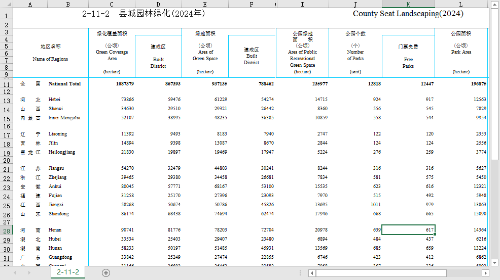 全国32个省份分省县城园林绿化2006-2024绿化覆盖绿地面积门票免费公园个数等