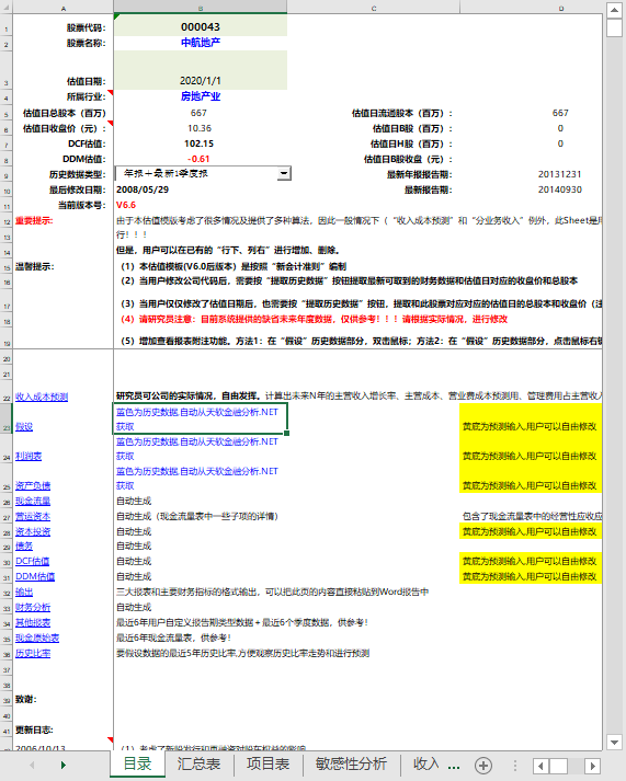(每家公司或行业的估值模型不尽相同,但大致包含估值所需要的数据,及自动计算公式)