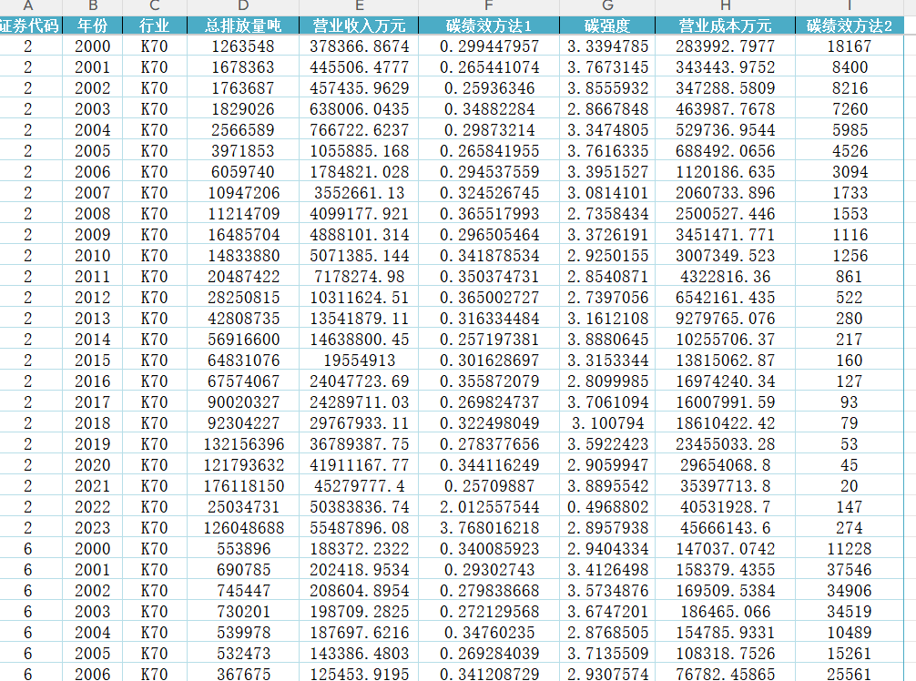 2000-2023年A股上市公司碳强度、碳绩效、碳排放量数据合集,整理好的面板数据,excel或stata版