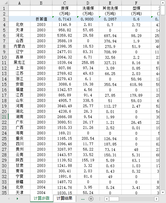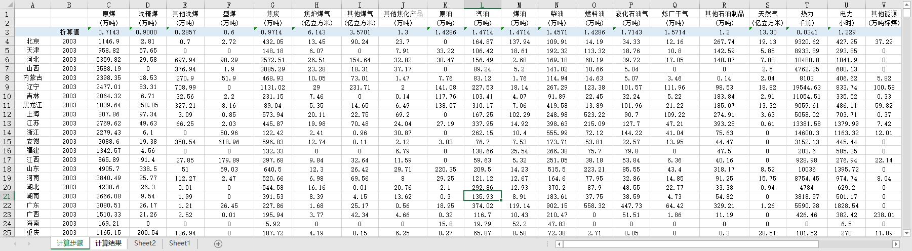 全国30个省份能源消费结构煤炭占比2003-2022原煤洗精煤型煤焦炭焦炉煤气原油汽油柴油天然气热力电力