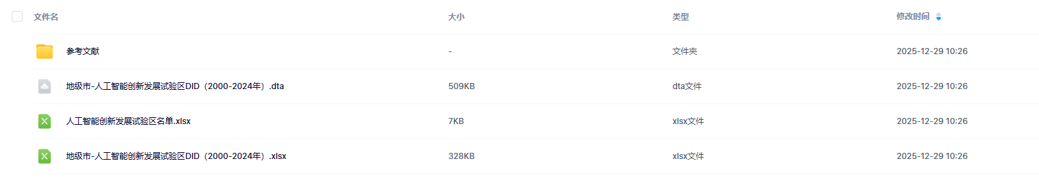 一、数据介绍数据名称:国家新一代人工智能创新发展试验区DID