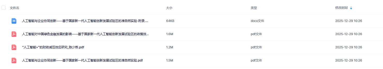 三、参考文献[1]张林凤,周兵.人工智能对中国绿色金融发展的影响——基于国家新一代人工智能创新发展试验区的政策效应[J].中国流通经济,2025,39(11):112-126.