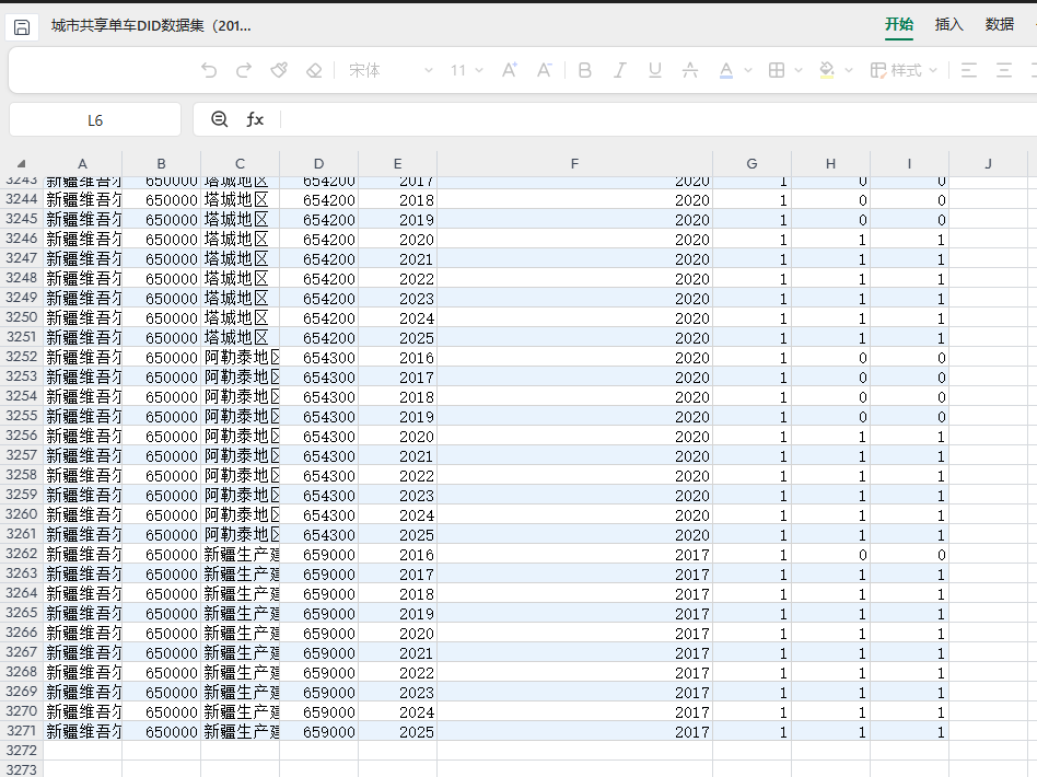 数据简介:自2016年首批无桩共享单车进驻城市以来,以 ofo 为代表的共享单车平台通过在城市公共空间投放车辆,有效缓解了居民出行“最后一公里”问题,逐步改变了城市短途出行方式;随后,越来越多共享单车品牌进入城市并参与市场竞争,共享单车由早期试点逐渐发展为重要的城市公共出行组成部分。本数据以陈勇吏等(2024)关于共享单车与居民消费关系的研究为参考,旨在刻画无桩共享单车进入城市后对城市公共出行条件及居民经济行为产生影响的时间背景。作为依托数字平台运行的新型城市出行方式,共享单车通过改善城市公共空间中的出行可达性,降低居民通勤与短途出行成本,被认为是影响城市消费活动、空间流动性与经济活力的重要因素。陈勇吏等(2024)指出,共享单车对居民消费的促进作用并非源于个别场所或特定群体的使用,而是通过提升城市整体出行便利性,进而影响居民日常活动半径与消费决策。在此意义上,共享单车是否进入并服务于城市公共出行体系,构成其产生城市层面经济效应的关键前提。因此,基于共享单车进入城市的时间差异开展城市层面的实证研究,对于系统评估共享单车对城市运行与经济活动的影响具有重要的现实意义和研究价值。