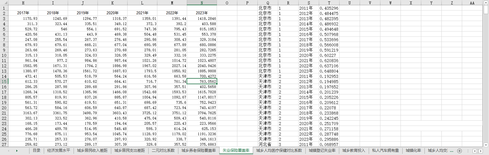 全国31个省份省级城乡融合发展指数2011-2023空间经济社会生态教育投入交通通信森林覆盖率等