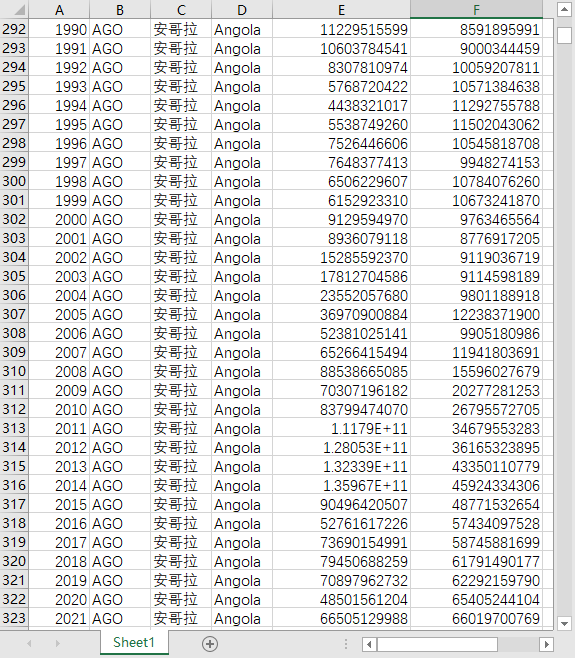 年份 国家代码 国家名称 国家英文名 国内生产总值(现价美元) 外债余额总额(债务国报表,现价美元)