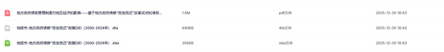 三、参考文献付强, 李雨晴, 安子栋. 地方政府债务管理制度对地区经济的影响——基于地方政府债券“自发自还”改革试点的准自然实验分析[J]. 学习与探索, 2025(05): 76-85+179.