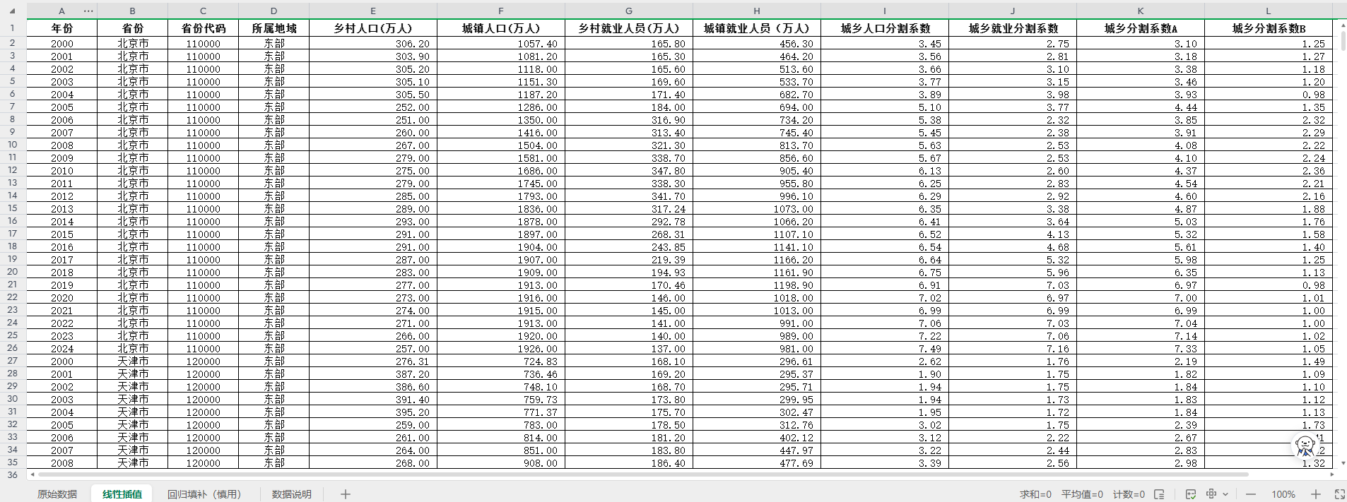 张梦婷等(2025)-城乡分割系数:城乡人口分割系数 / 城乡就业分割系数