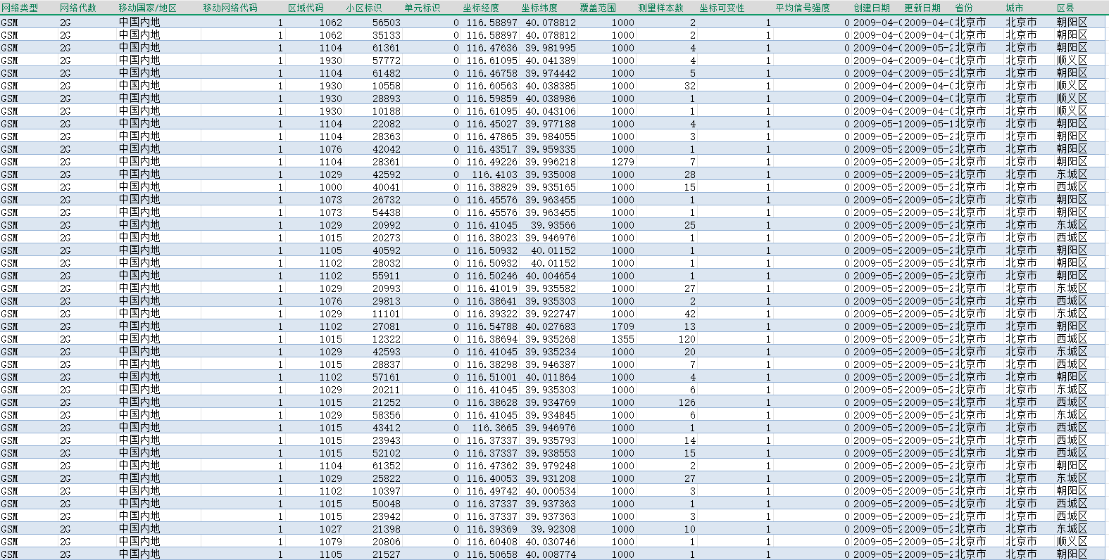 在数字经济时代,数据已成为推动科学研究和技术创新的核心要素。中国手机基站数据(2006-2025年)作为一项覆盖时间长、空间范围广的高精度基础设施数据,不仅记录了通信网络的演进历程,更为区域经济、城市规划、人口流动、环境评估等跨学科研究提供了宝贵的实证基础。从时空维度看,该数据能够揭示城镇化进程中的基础设施布局规律,辅助分析人口迁移与经济活动的动态。