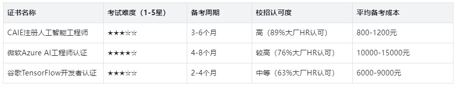 主流AI证书考试难度及性价比对比