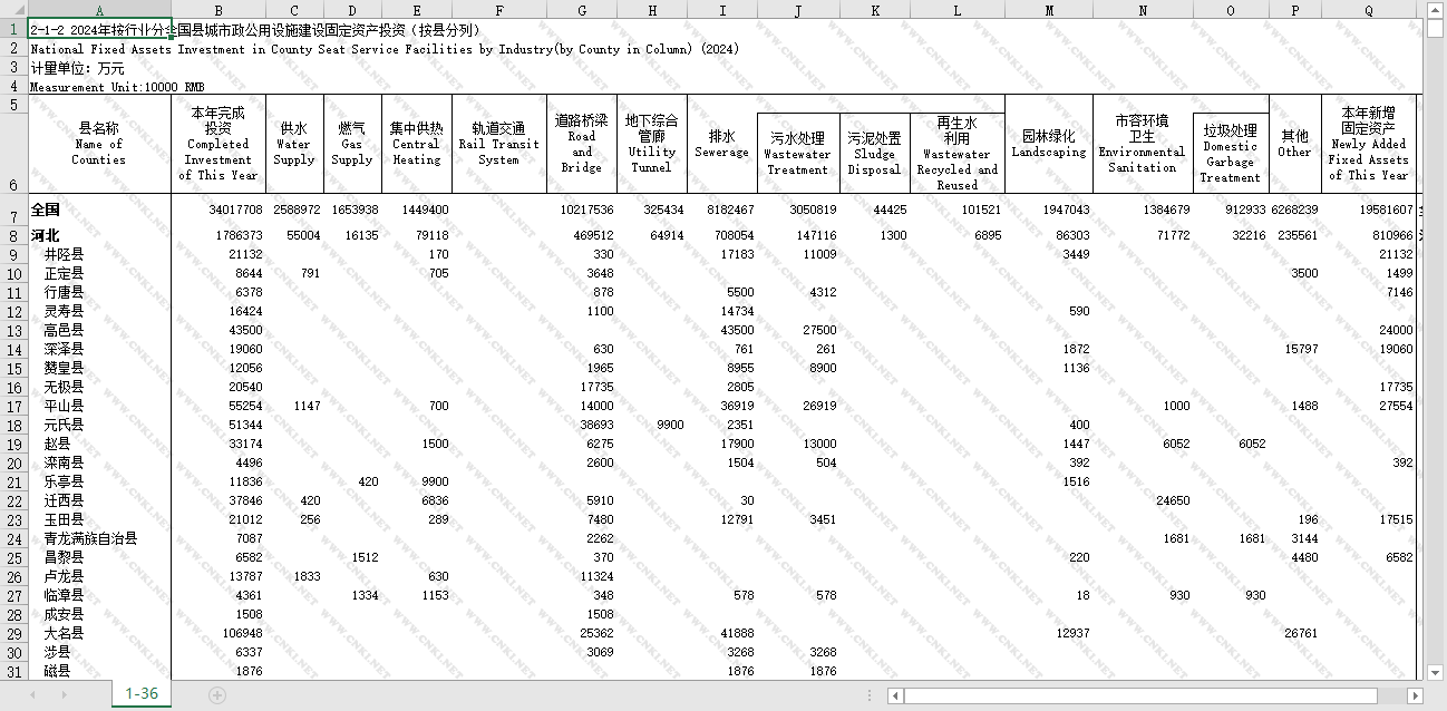 2-1-2 2015-2024年按行业分全国县城市政公用设施建设固定资产投资(按县分列)供水燃气集.zip