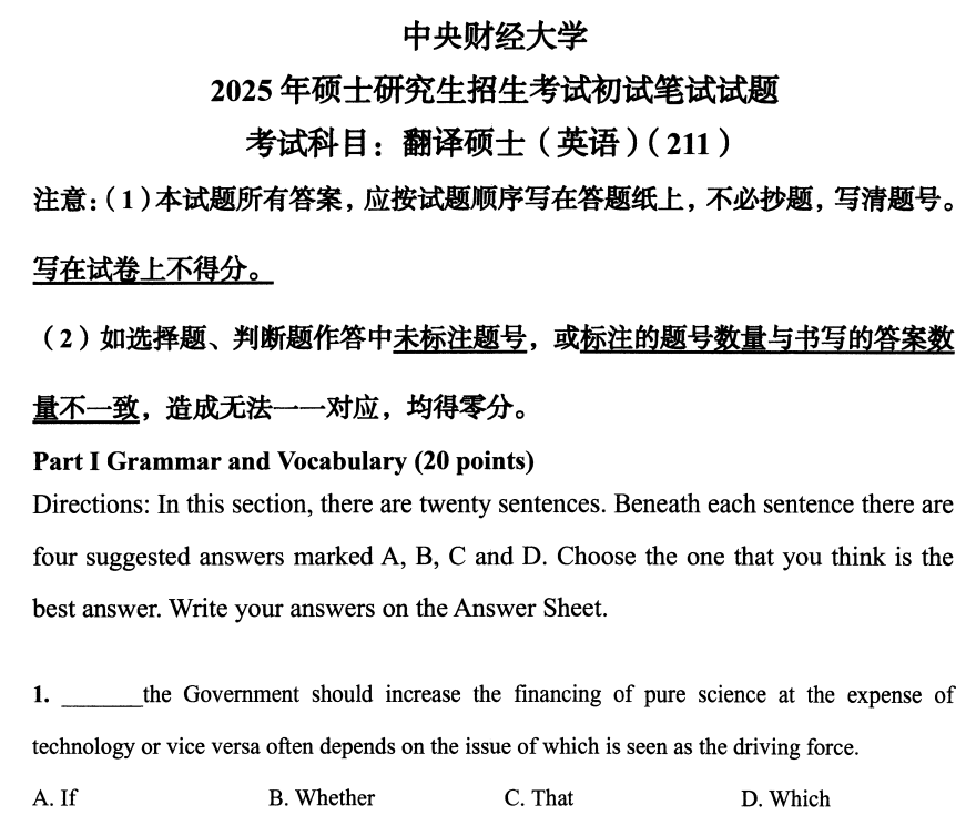 中财中央财经大学211翻译硕士英语2025(无答案)考研真题