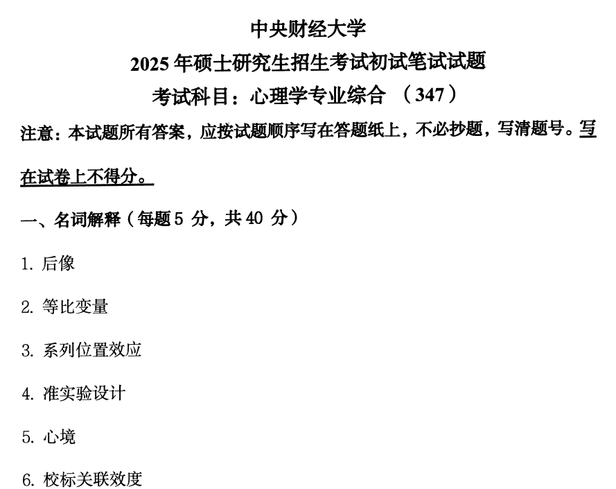 中财中央财经大学347心理学专业综合2025(无答案).pdf