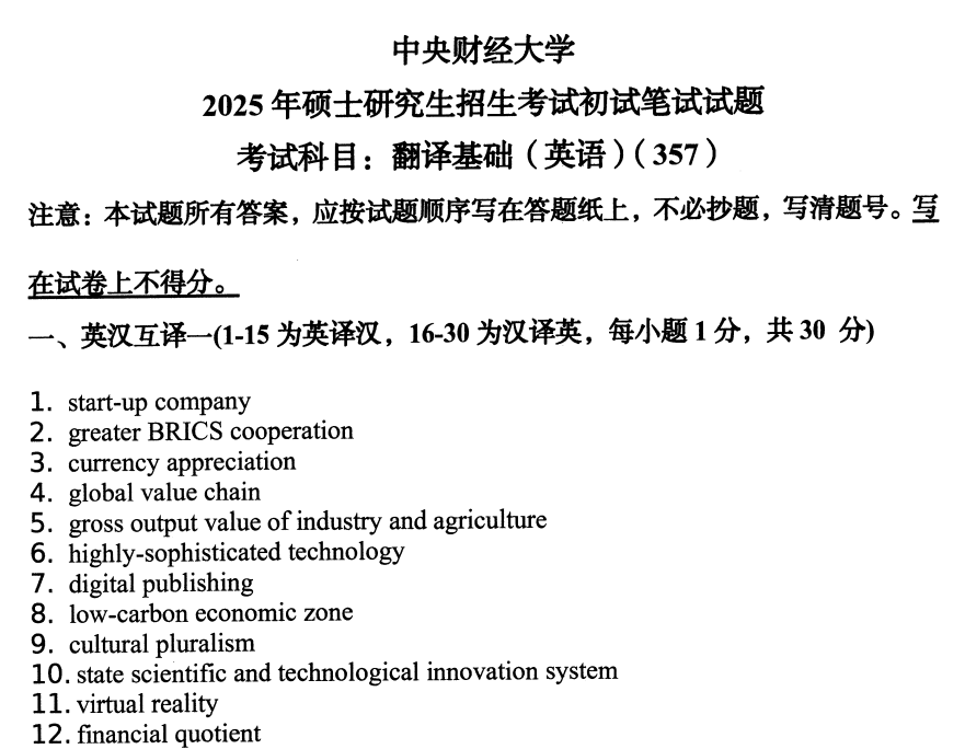中财中央财经大学357英语翻译基础2025(无答案)考研真题