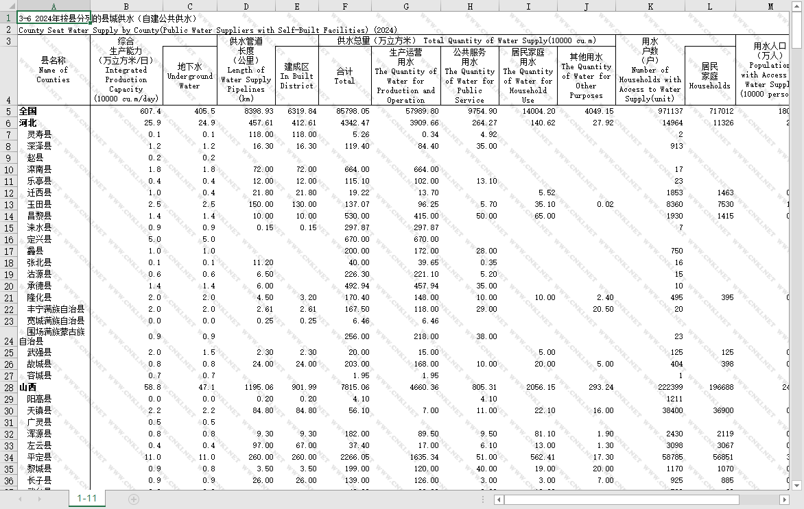 数据范围:全国各个省份的县域县城建设数据,每年大约1500个区县的数据